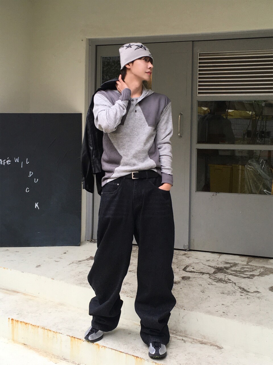 華夫格袖套星星帽T