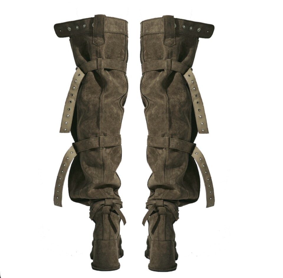 高跟綁帶扣環過膝靴